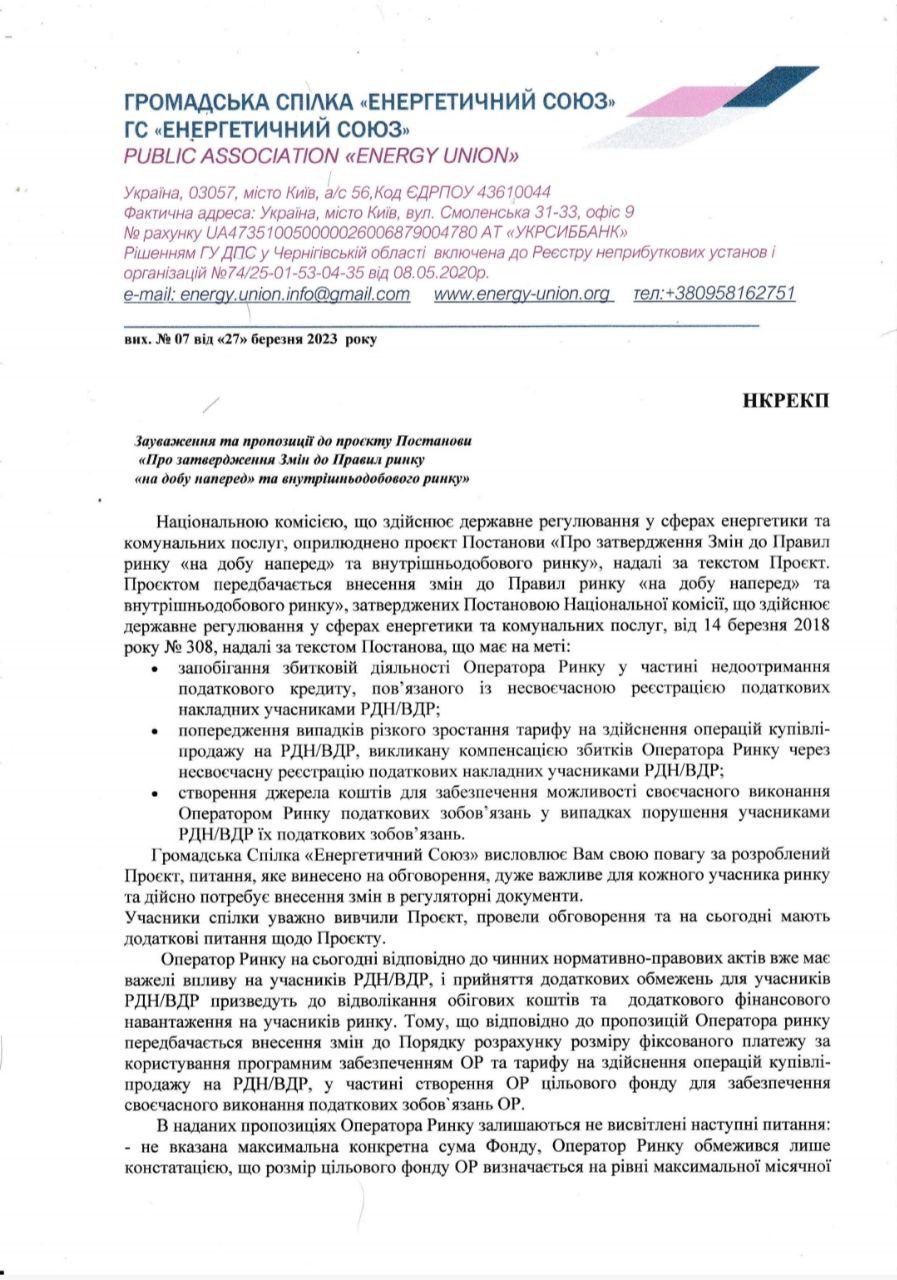 В запропонованому Проєкті питань більше, ніж відповідей. Тому просимо Вас, шановний регулятор, виважено поставитися до цього Проєкту.